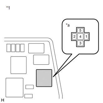 | (a) Extraiga el relé del desempañador del conjunto del bloque de relés y bloque de empalmes del compartimiento del motor. |