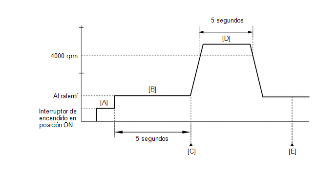 - Caliente el motor a un régimen igual o superior a 4,000 rpm durante 5 segundos [D].