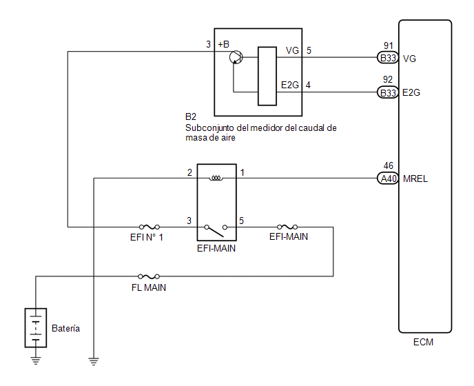 | REPARE O SUSTITUYA EL MAZO DE CABLES O EL CONECTOR (SUBCONJUNTO DEL MEDIDOR DEL CAUDAL DE MASA DE AIRE - RELÉ EFI-MAIN) |