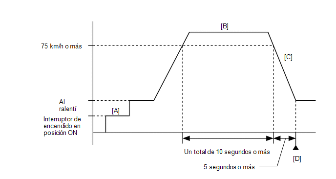 - Conduzca el vehículo a una velocidad de 75 km/h (47 mph) o superior durante un mínimo de 10 segundos [B].