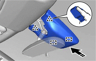AVISO: No toque la lente de la cámara. (c) Conecte el conector para instalar la cámara de reconocimiento hacia delante. 2. INSTALE EL CIERRE DE RECONOCIMIENTO DELANTERO (a) Enganche las 4 guías y las 2 garras como se muestra en la ilustración para colocar el cierre de reconocimiento hacia delante.