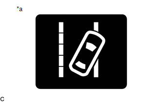 (3) Para la pantalla de información múltiple a color: Confirme que el indicador de aviso de cambio involuntario de carril (blanco) del conjunto del juego de instrumentos se enciende o se apaga cuando se pulsa el interruptor de aviso de cambio involuntario de carril (conjunto del interruptor de la almohadilla del volante). OBSERVACIÓN: El estado ON/OFF del sistema de cambio involuntario de carril al permanecen inalterados cuando el interruptor de encendido en OFF y de nuevo a ON.