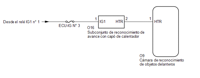 Inferior a 1.5 V | (c) Conecte el conector O16 del subconjunto de reconocimiento de avance con capó de calentador.