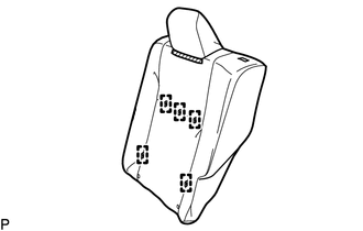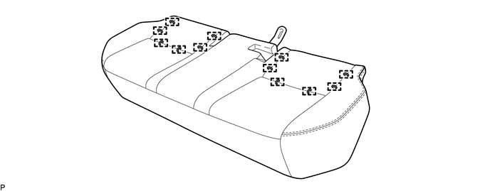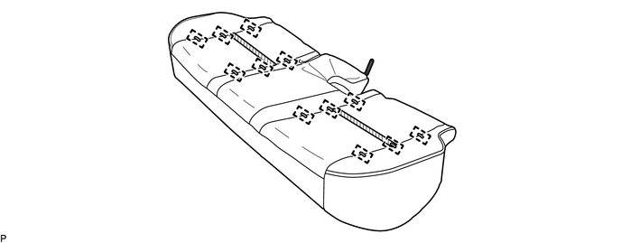 (3) Desenganche los 2 fijadores para extraer la funda del cojín de los asientos traseros de tipo banco de la almohadilla del cojín del asiento trasero de tipo banco. (b) Fabricados por TMMMS: (1) Extraiga los 27 anillos abiertos.