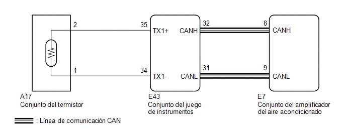 (a) Desenchufe el conector E43 del conjunto del juego de instrumentos. (b) Mida la resistencia según los valores de la siguiente tabla. Resistencia estándar: