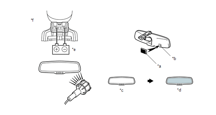 INSPECCIÓN PROCEDIMIENTO 1. INSPECCIONE EL CONJUNTO DEL ESPEJO RETROVISOR INTERIOR (sin Toyota Safety Sense P) (a) Compruebe el funcionamiento del conjunto del espejo retrovisor interior electrocrómico.