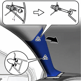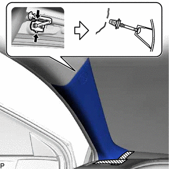 (e) Quite los 2 clips de la carrocería del vehículo. 40. EXTRAIGA EL CONJUNTO DEL PARASOL IZQUIERDO
