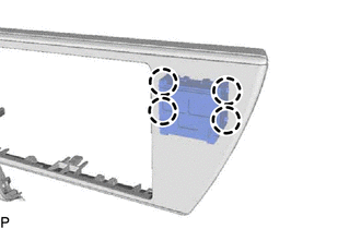 (a) Desenganche las 4 garras y extraiga el indicador luminoso de seguridad (conjunto de las luces testigo). InspecciÓn INSPECCIÓN PROCEDIMIENTO 1. INSPECCIONE EL INDICADOR LUMINOSO DE SEGURIDAD (CONJUNTO DE LUCES TESTIGO) (a) Sin advertencia del cinturón de seguridad del asiento trasero:
