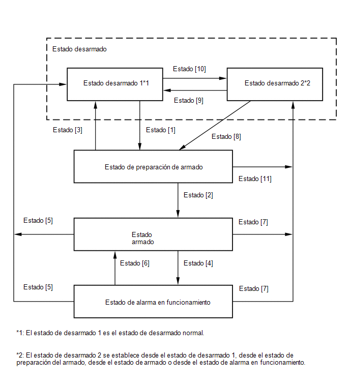 En el estado de desarmado 1, cuando se desactiva el interruptor de encendido,
