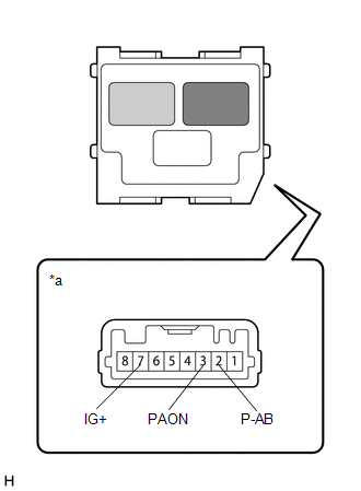 (1) Aplique tensión de la batería al conector y compruebe el estado del indicador ON/OFF del airbag del pasajero. OK: