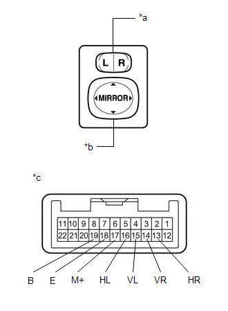 (a) Inspeccione el interruptor de selección del espejo y el interruptor de ajuste de la superficie del espejo.